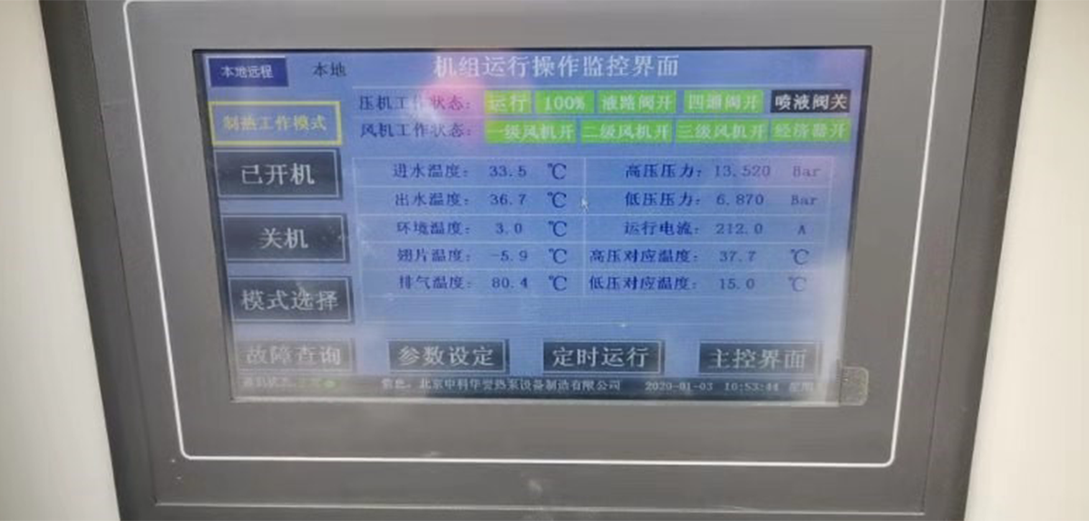 50萬平方米集中供暖項目采用空氣源螺桿機作為供暖設(shè)備。其中單臺機組標(biāo)況下制熱量為620KW。項目采用了分布式集中供暖方式共有兩個能源站,1號能源站采用地面式安裝,2號能源站采用框架式分層式共計采用漢鐘精機LT-S-A系列超低環(huán)溫雙級熱泵壓縮機63臺,2016年至2018年采暖運行中,設(shè)備運行平穩(wěn),高層建筑室內(nèi)溫度達到22-26℃,別墅達到20-22℃,用戶表示效果良好。