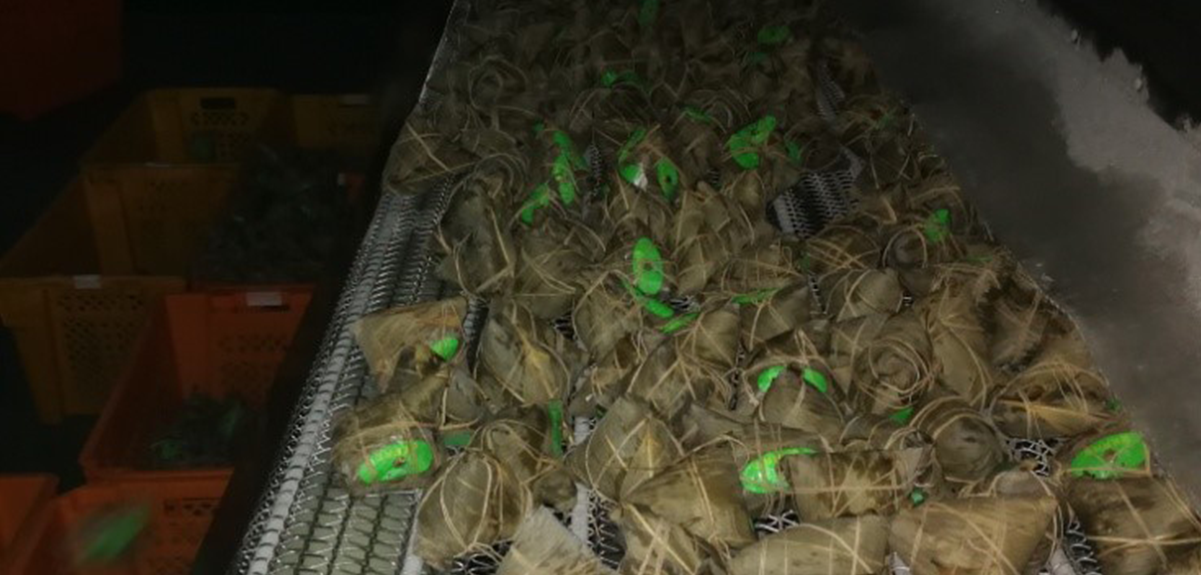 視頻速凍隧道項(xiàng)目速凍隧道主要用于粽子的速凍,隧道溫度要求-35℃,設(shè)計(jì)要求1.2噸/小時(shí),120克粽子終了中心溫度-16℃~-18℃。項(xiàng)目采用漢鐘精機(jī)LT-S-L系列寬溫區(qū)雙級(jí)低溫冷凍壓縮機(jī)兩臺(tái)蒸發(fā)式冷凝器低溫速凍機(jī)組一套。